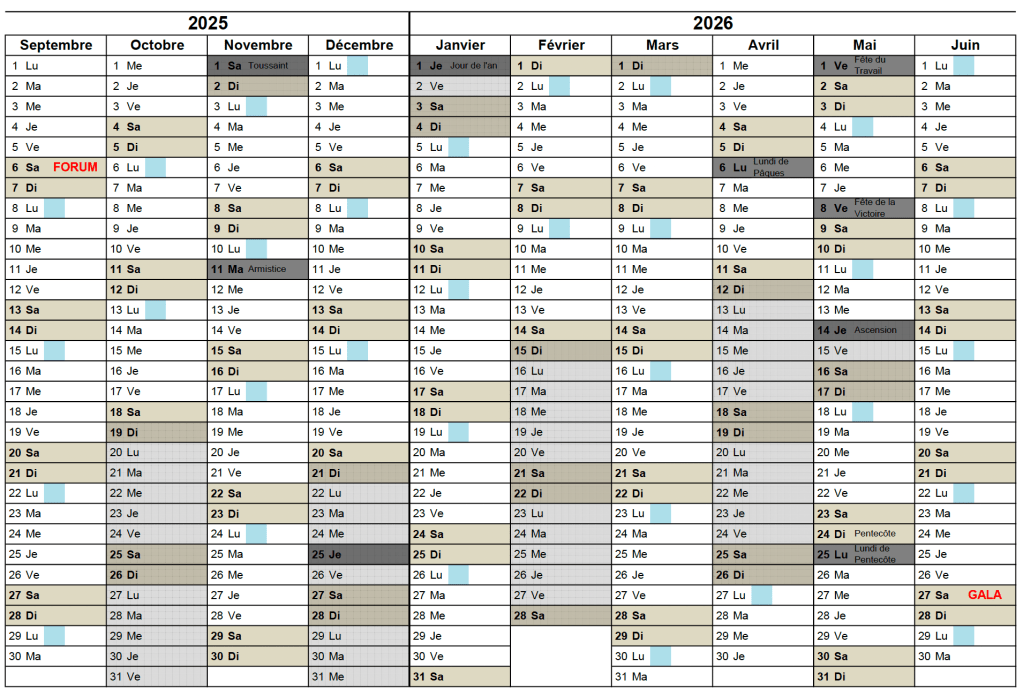Calendriers des Cours